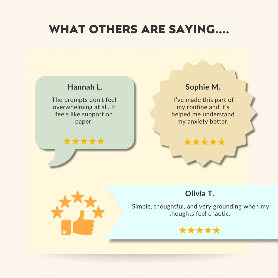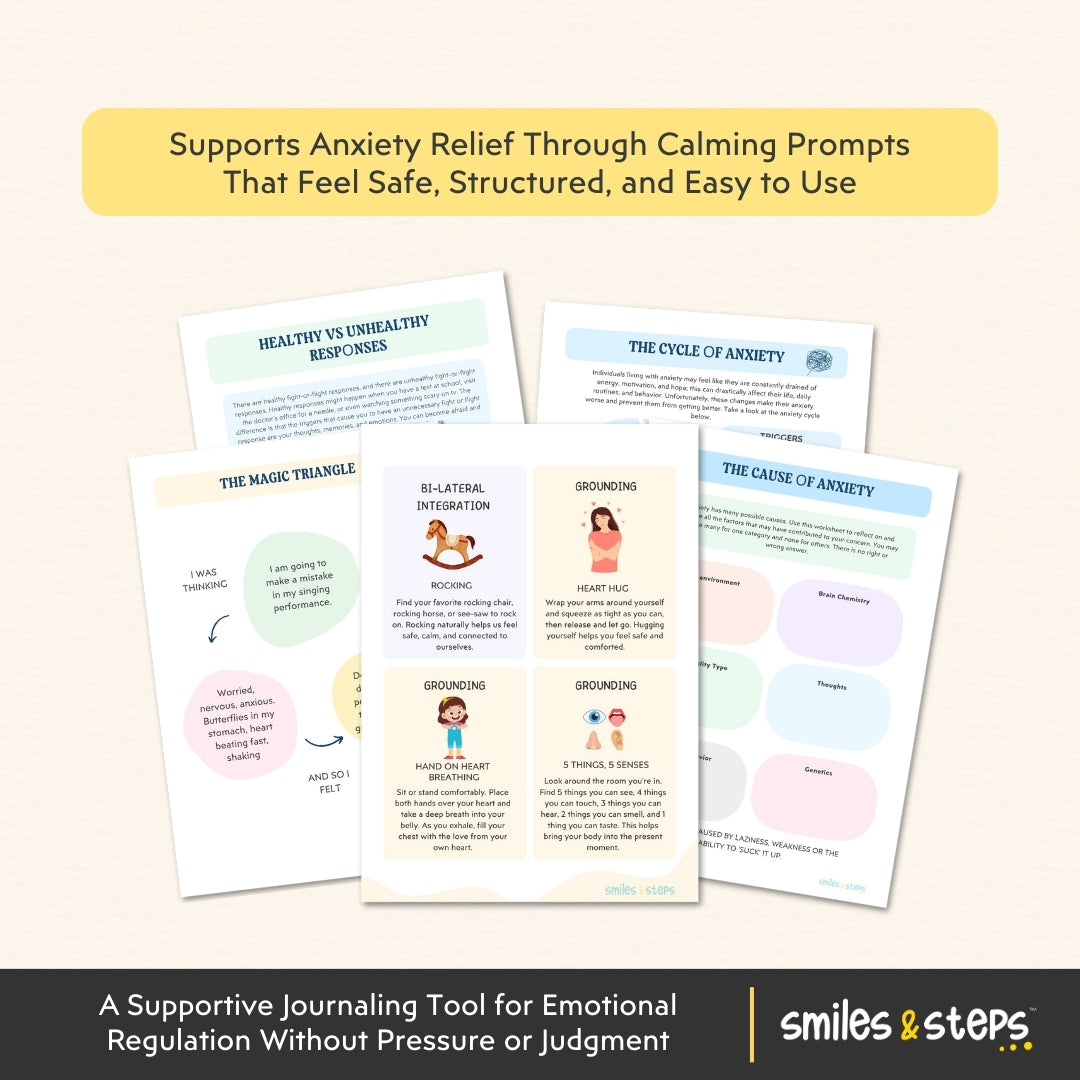 - ✅ Guided Journaling Prompts: Easy-to-follow prompts that help calm racing thoughts during anxious moments.