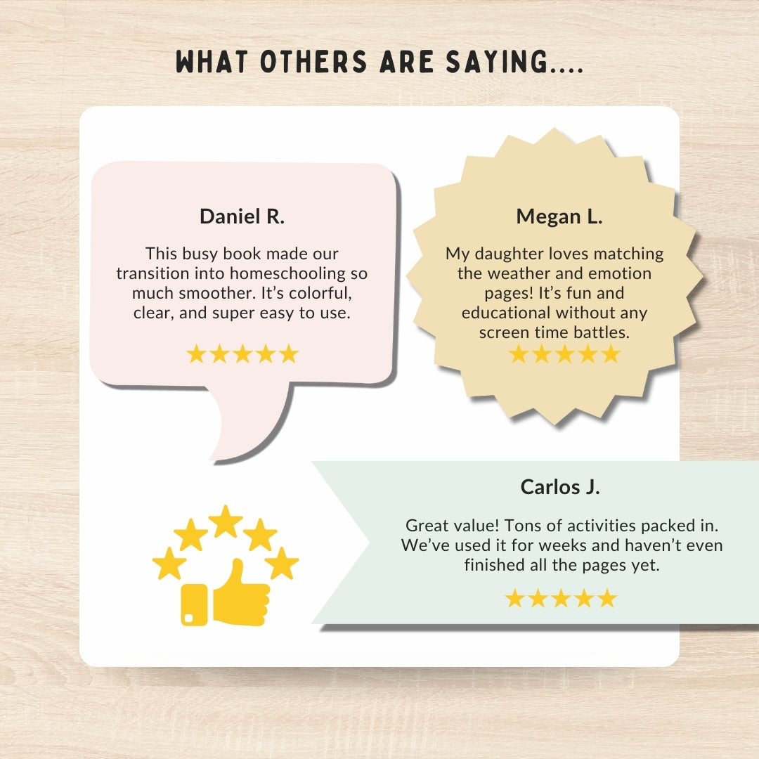 - ⭐ Expands vocabulary for colors, shapes, feelings, weather, and more.