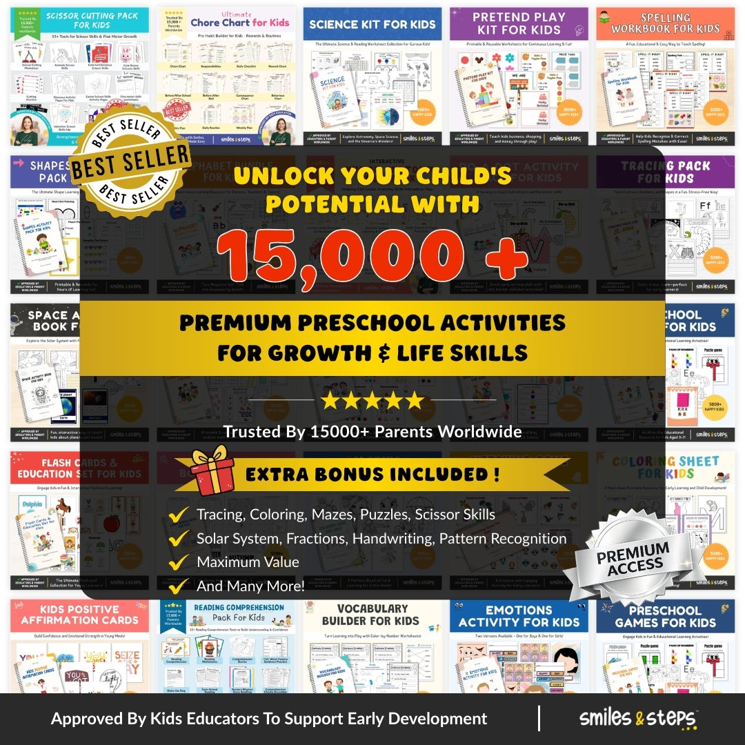 An extraordinary kids learning bundle packed with over 15,000 engaging preschool activities to help your child grow smarter, stronger, and more confident—all while having fun! From alphabet games to human anatomy sheets, this bundle makes early learning playful and powerful.
